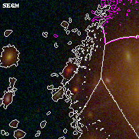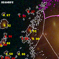 Black segments are analyzed here. Roll mouse over color images to view segments. Best viewed in a wide browser window (1200 pixels or more). Download SED & P(z) plots to view larger versions.