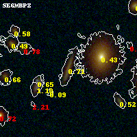 Black segments are analyzed here. Roll mouse over color images to view segments. Best viewed in a wide browser window (1200 pixels or more). Download SED & P(z) plots to view larger versions.