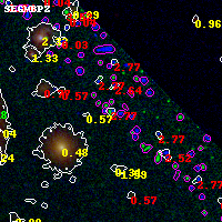 Black segments are analyzed here. Roll mouse over color images to view segments. Best viewed in a wide browser window (1200 pixels or more). Download SED & P(z) plots to view larger versions.
