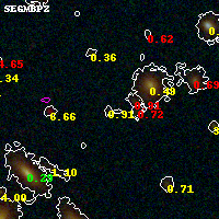 Black segments are analyzed here. Roll mouse over color images to view segments. Best viewed in a wide browser window (1200 pixels or more). Download SED & P(z) plots to view larger versions.