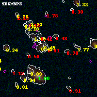 Black segments are analyzed here. Roll mouse over color images to view segments. Best viewed in a wide browser window (1200 pixels or more). Download SED & P(z) plots to view larger versions.