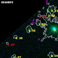 Black segments are analyzed here. Roll mouse over color images to view segments. Best viewed in a wide browser window (1200 pixels or more). Download SED & P(z) plots to view larger versions.