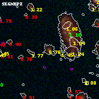 Black segments are analyzed here. Roll mouse over color images to view segments. Best viewed in a wide browser window (1200 pixels or more). Download SED & P(z) plots to view larger versions.