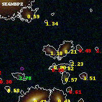 Black segments are analyzed here. Roll mouse over color images to view segments. Best viewed in a wide browser window (1200 pixels or more). Download SED & P(z) plots to view larger versions.