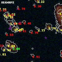 Black segments are analyzed here. Roll mouse over color images to view segments. Best viewed in a wide browser window (1200 pixels or more). Download SED & P(z) plots to view larger versions.