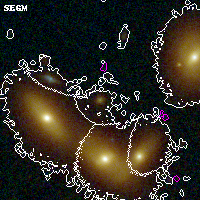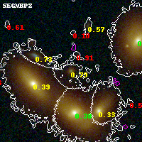 Black segments are analyzed here. Roll mouse over color images to view segments. Best viewed in a wide browser window (1200 pixels or more). Download SED & P(z) plots to view larger versions.