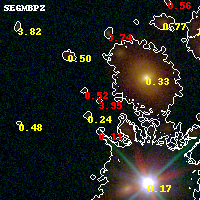 Black segments are analyzed here. Roll mouse over color images to view segments. Best viewed in a wide browser window (1200 pixels or more). Download SED & P(z) plots to view larger versions.