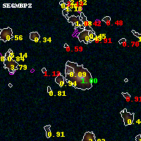 Black segments are analyzed here. Roll mouse over color images to view segments. Best viewed in a wide browser window (1200 pixels or more). Download SED & P(z) plots to view larger versions.
