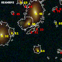 Black segments are analyzed here. Roll mouse over color images to view segments. Best viewed in a wide browser window (1200 pixels or more). Download SED & P(z) plots to view larger versions.