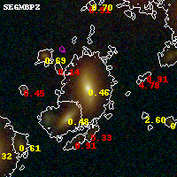Black segments are analyzed here. Roll mouse over color images to view segments. Best viewed in a wide browser window (1200 pixels or more). Download SED & P(z) plots to view larger versions.