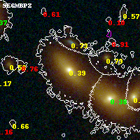 Black segments are analyzed here. Roll mouse over color images to view segments. Best viewed in a wide browser window (1200 pixels or more). Download SED & P(z) plots to view larger versions.