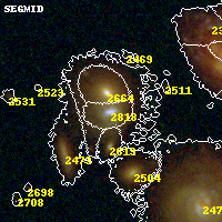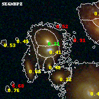 Black segments are analyzed here. Roll mouse over color images to view segments. Best viewed in a wide browser window (1200 pixels or more). Download SED & P(z) plots to view larger versions.