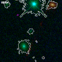Black segments are analyzed here. Roll mouse over color images to view segments. Best viewed in a wide browser window (1200 pixels or more). Download SED & P(z) plots to view larger versions.