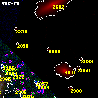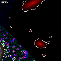 Black segments are analyzed here. Roll mouse over color images to view segments. Best viewed in a wide browser window (1200 pixels or more). Download SED & P(z) plots to view larger versions.