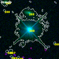 Object #288   x,y = (2733, 4389)   RA, Dec = (11:50:50.328, -28:03:03.24) = (177.70970, -28.05090)   BPZ = 0.097 [0.054--0.627]   type = 7.10 (Scd_B10 - SB1_B10)   stellarity = 1.00   chisq2 = 0.09   ODDS = 0.68   z_cluster = 0.390