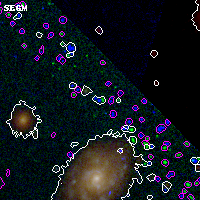 Black segments are analyzed here. Roll mouse over color images to view segments. Best viewed in a wide browser window (1200 pixels or more). Download SED & P(z) plots to view larger versions.