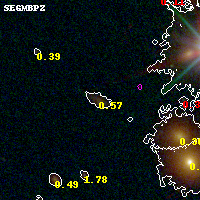 Black segments are analyzed here. Roll mouse over color images to view segments. Best viewed in a wide browser window (1200 pixels or more). Download SED & P(z) plots to view larger versions.