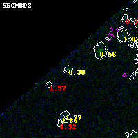 Black segments are analyzed here. Roll mouse over color images to view segments. Best viewed in a wide browser window (1200 pixels or more). Download SED & P(z) plots to view larger versions.