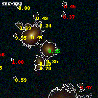 Black segments are analyzed here. Roll mouse over color images to view segments. Best viewed in a wide browser window (1200 pixels or more). Download SED & P(z) plots to view larger versions.