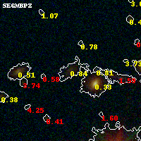 Black segments are analyzed here. Roll mouse over color images to view segments. Best viewed in a wide browser window (1200 pixels or more). Download SED & P(z) plots to view larger versions.