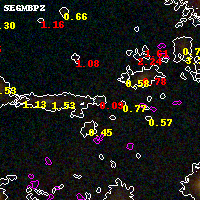 Black segments are analyzed here. Roll mouse over color images to view segments. Best viewed in a wide browser window (1200 pixels or more). Download SED & P(z) plots to view larger versions.