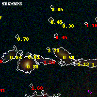 Black segments are analyzed here. Roll mouse over color images to view segments. Best viewed in a wide browser window (1200 pixels or more). Download SED & P(z) plots to view larger versions.