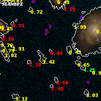 Black segments are analyzed here. Roll mouse over color images to view segments. Best viewed in a wide browser window (1200 pixels or more). Download SED & P(z) plots to view larger versions.
