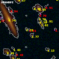 Black segments are analyzed here. Roll mouse over color images to view segments. Best viewed in a wide browser window (1200 pixels or more). Download SED & P(z) plots to view larger versions.