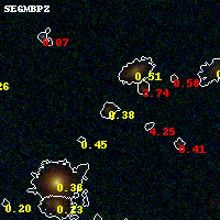 Black segments are analyzed here. Roll mouse over color images to view segments. Best viewed in a wide browser window (1200 pixels or more). Download SED & P(z) plots to view larger versions.