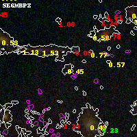 Black segments are analyzed here. Roll mouse over color images to view segments. Best viewed in a wide browser window (1200 pixels or more). Download SED & P(z) plots to view larger versions.