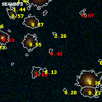 Black segments are analyzed here. Roll mouse over color images to view segments. Best viewed in a wide browser window (1200 pixels or more). Download SED & P(z) plots to view larger versions.