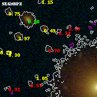 Black segments are analyzed here. Roll mouse over color images to view segments. Best viewed in a wide browser window (1200 pixels or more). Download SED & P(z) plots to view larger versions.