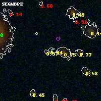 Black segments are analyzed here. Roll mouse over color images to view segments. Best viewed in a wide browser window (1200 pixels or more). Download SED & P(z) plots to view larger versions.