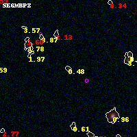 Black segments are analyzed here. Roll mouse over color images to view segments. Best viewed in a wide browser window (1200 pixels or more). Download SED & P(z) plots to view larger versions.