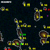 Black segments are analyzed here. Roll mouse over color images to view segments. Best viewed in a wide browser window (1200 pixels or more). Download SED & P(z) plots to view larger versions.