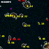 Black segments are analyzed here. Roll mouse over color images to view segments. Best viewed in a wide browser window (1200 pixels or more). Download SED & P(z) plots to view larger versions.