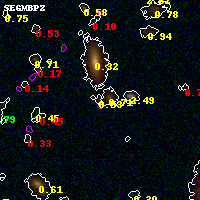 Black segments are analyzed here. Roll mouse over color images to view segments. Best viewed in a wide browser window (1200 pixels or more). Download SED & P(z) plots to view larger versions.