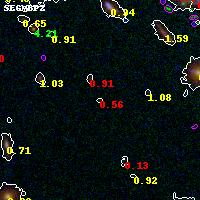 Black segments are analyzed here. Roll mouse over color images to view segments. Best viewed in a wide browser window (1200 pixels or more). Download SED & P(z) plots to view larger versions.