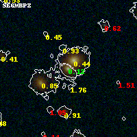 Black segments are analyzed here. Roll mouse over color images to view segments. Best viewed in a wide browser window (1200 pixels or more). Download SED & P(z) plots to view larger versions.