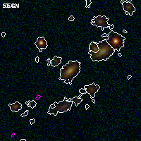 Black segments are analyzed here. Roll mouse over color images to view segments. Best viewed in a wide browser window (1200 pixels or more). Download SED & P(z) plots to view larger versions.