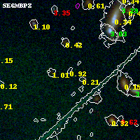 Black segments are analyzed here. Roll mouse over color images to view segments. Best viewed in a wide browser window (1200 pixels or more). Download SED & P(z) plots to view larger versions.