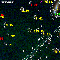 Black segments are analyzed here. Roll mouse over color images to view segments. Best viewed in a wide browser window (1200 pixels or more). Download SED & P(z) plots to view larger versions.