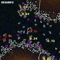 Black segments are analyzed here. Roll mouse over color images to view segments. Best viewed in a wide browser window (1200 pixels or more). Download SED & P(z) plots to view larger versions.