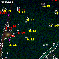 Black segments are analyzed here. Roll mouse over color images to view segments. Best viewed in a wide browser window (1200 pixels or more). Download SED & P(z) plots to view larger versions.