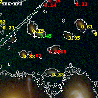 Black segments are analyzed here. Roll mouse over color images to view segments. Best viewed in a wide browser window (1200 pixels or more). Download SED & P(z) plots to view larger versions.