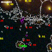 Black segments are analyzed here. Roll mouse over color images to view segments. Best viewed in a wide browser window (1200 pixels or more). Download SED & P(z) plots to view larger versions.