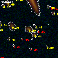 Black segments are analyzed here. Roll mouse over color images to view segments. Best viewed in a wide browser window (1200 pixels or more). Download SED & P(z) plots to view larger versions.