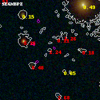 Black segments are analyzed here. Roll mouse over color images to view segments. Best viewed in a wide browser window (1200 pixels or more). Download SED & P(z) plots to view larger versions.