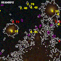 Black segments are analyzed here. Roll mouse over color images to view segments. Best viewed in a wide browser window (1200 pixels or more). Download SED & P(z) plots to view larger versions.
