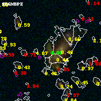 Black segments are analyzed here. Roll mouse over color images to view segments. Best viewed in a wide browser window (1200 pixels or more). Download SED & P(z) plots to view larger versions.
